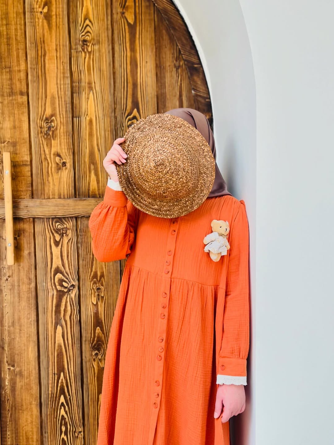 مانتو دخترانه موسلین با نوار خامه دوزی و عروسک